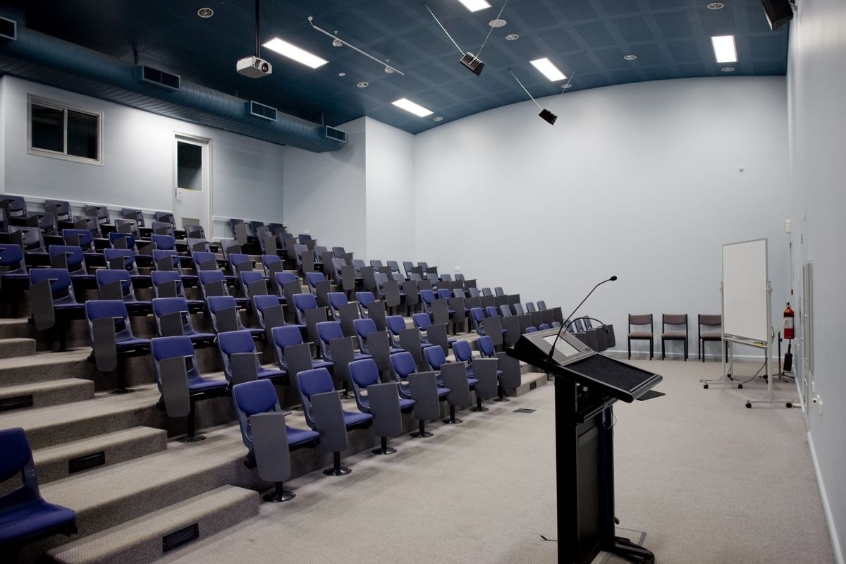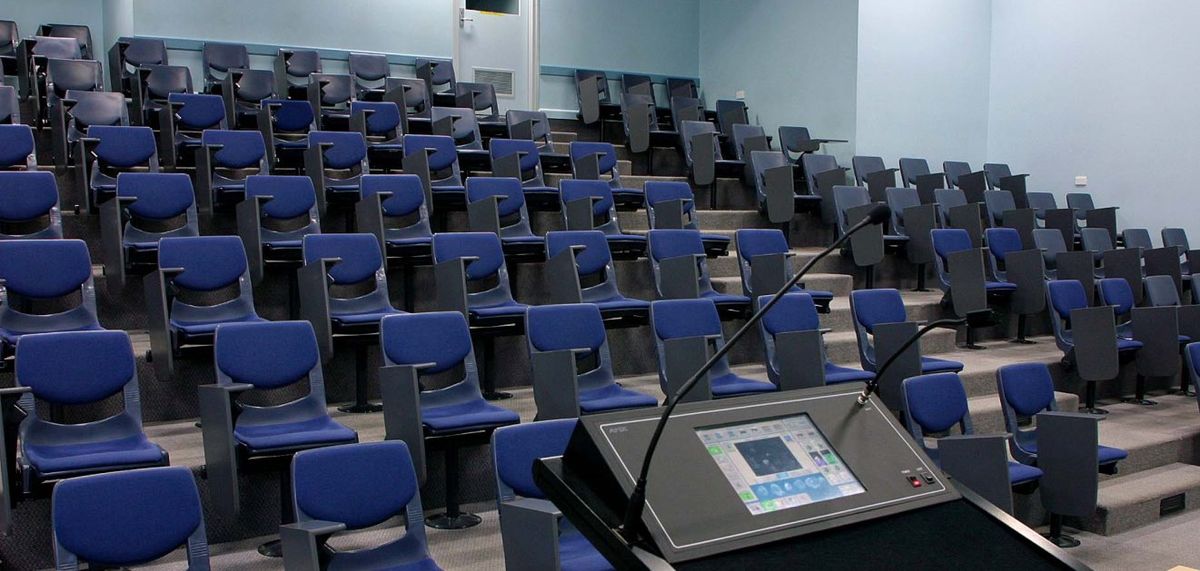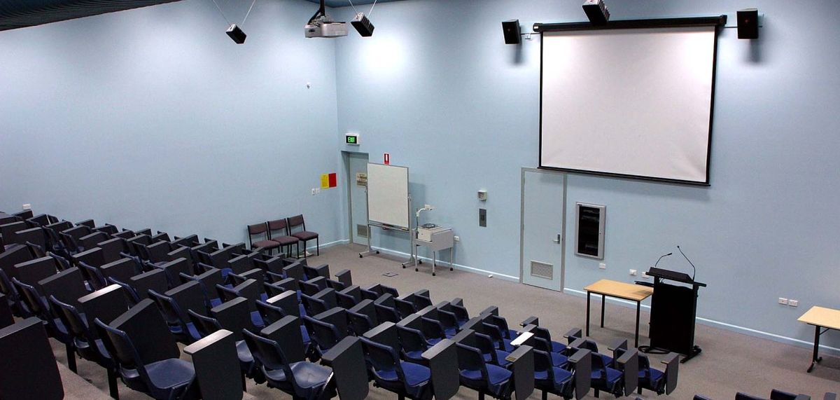 The ground floor houses the college collection of reference texts, DVDs and CDs with desktop computer terminals, laptops and tablets available for research. Three rooms with folding walls can be used for class groups or quiet study. The building has a lecture theatre (MMT) with multi-media access seating 140 on the mezzanine floor.