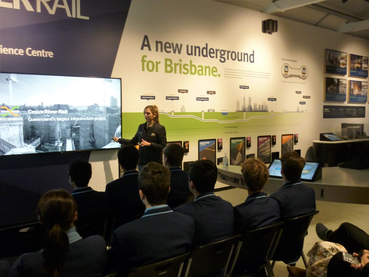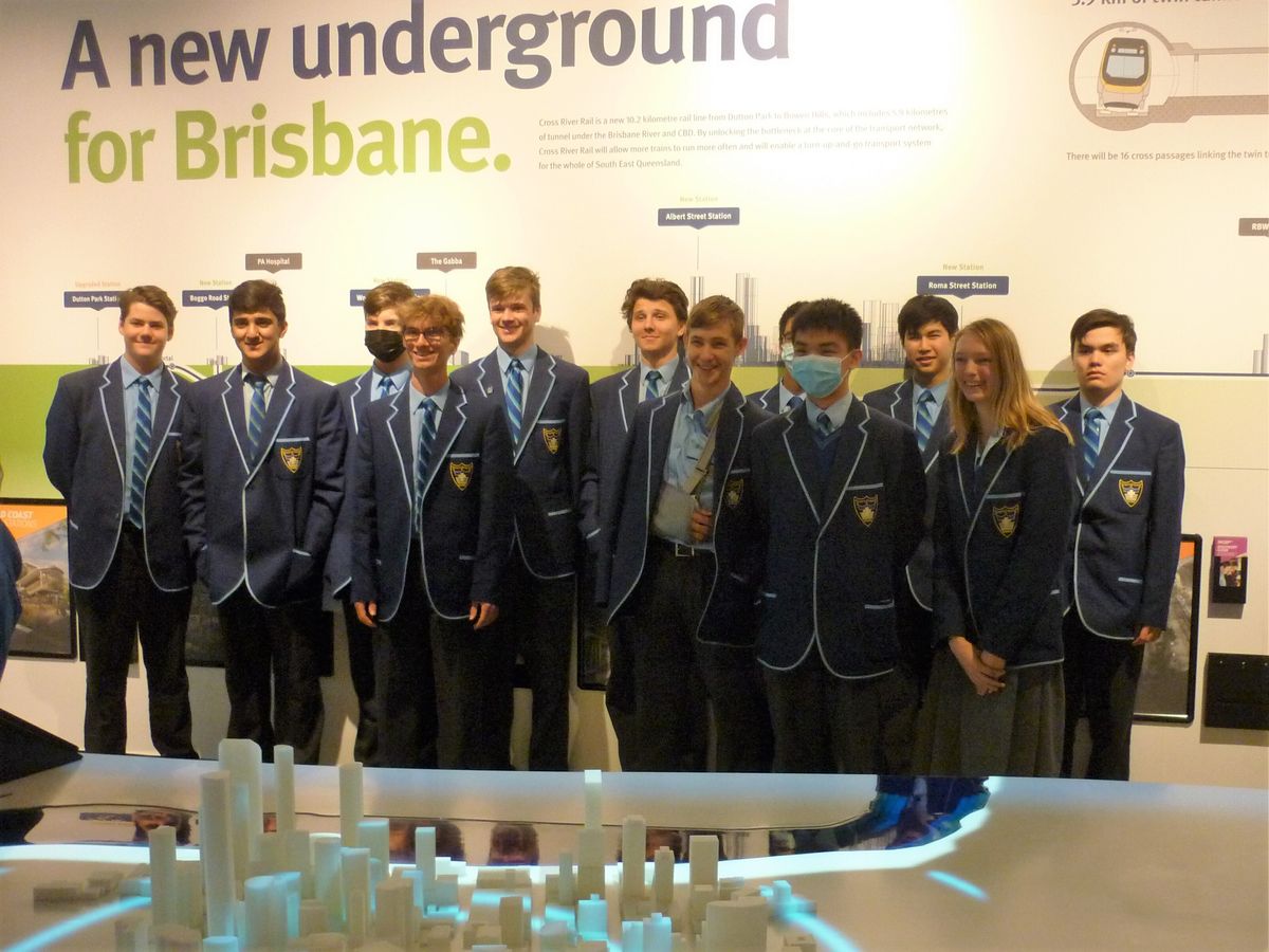 Recently the Year 10 and 11 Construction students visited the Cross River Rail Experience Centre where they learnt about the Cross River Rail project and its progress. They learnt about all the different trades and professions that have come together to make this project possible. Students learnt how their construction studies link to so many career pathways ranging from trades to para-professional and professional roles. They met alumni Kelly Fraser (Class of 2015), who is currently studying at university and involved in the Cross River Rail project.