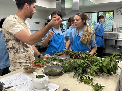 First Nations chef, Chris Jordan, joined our 2025 Year 12 Hospitality students to show them how to make mocktails using native Australian ingredients such as ooray plum and anise myrtle. Mr Jordan, who is the founder and director of native Australian cuisine business, Three Little Birds, shared his heritage and knowledge. He worked with students to prepare delicious beverages that acknowledge and celebrate our rich culture and the natural resources Australia has to offer.
